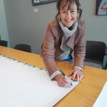 Tania Gibson, Mayor of Grey District Council signing the declaration.